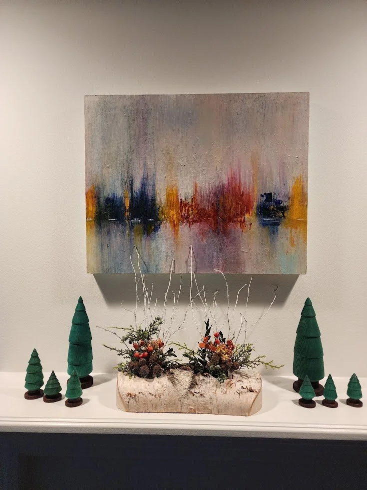 Beautiful, unique maple platter. This unusual piece has spectacular figure. The photographs do not do it justice. The grain swirls in many directions, there are fish-eye elements to it, and parts of it have an iridescent glimmer ("chatoyance"). While it can be used as a tray or a fruit dish, it makes a most distinctive center piece. It makes a statement.